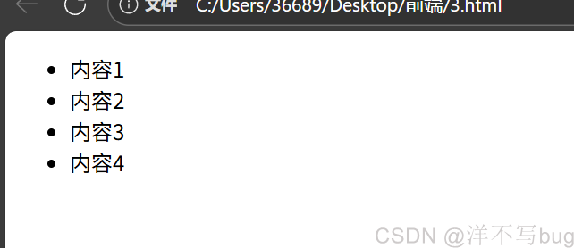 无序标签前面除了是实心圆点(disc),还可以是空心圆点(circle),或者正方形(square)