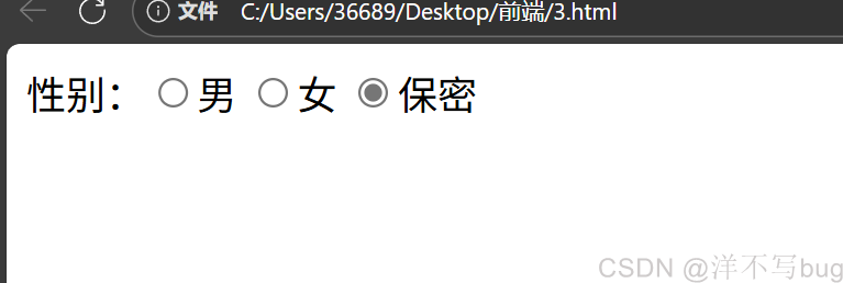 在公司入职时,可能会填写这种个人信息的表格,像这种男女的选项,也是通过input标签来完成的