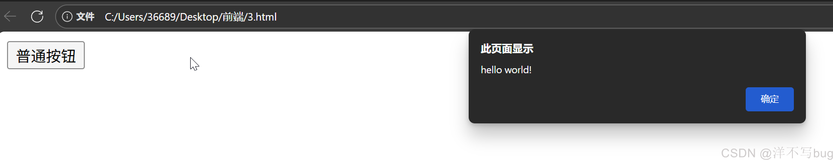 <input type="button" value="普通按钮" onclick="alert('hello world!')">