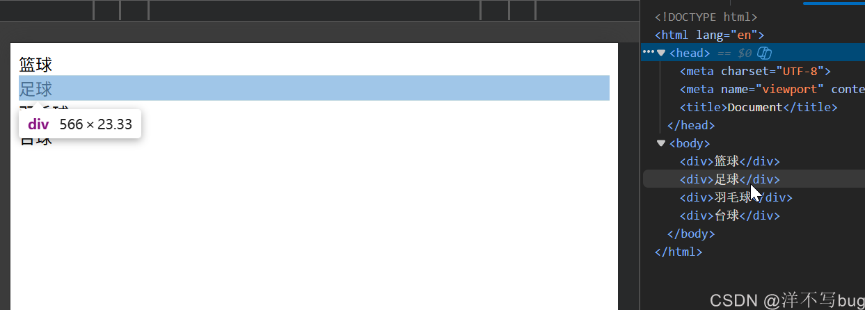 markup<div>篮球</div> <div>足球</div> <div>羽毛球</div> <div>台球</div>