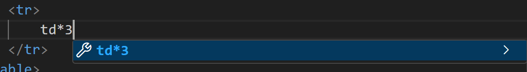 还有个小技巧,不用一个一个输入td,直接输入td* 3,按enter键,可以生成三组td标签
