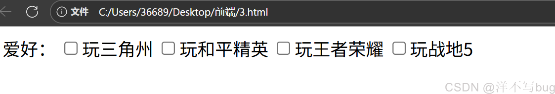 如果是爱好这些,可能同时有多个,可以多选,那就要用到复选框,type属性为checkbox: