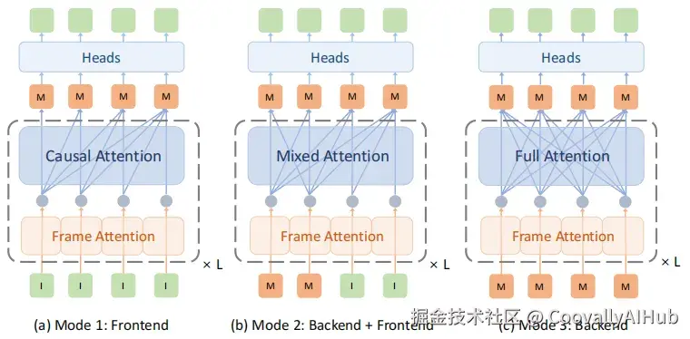- 模式1(前端训练): 使用因果注意力,模拟在线推理