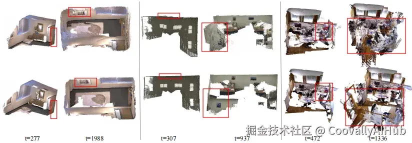 在7-Scenes数据集上,SLAM-Former的重建精度达到0.017m,比其他方法提升约50%以上;在Replica数据集上同样取得最佳重建质量。