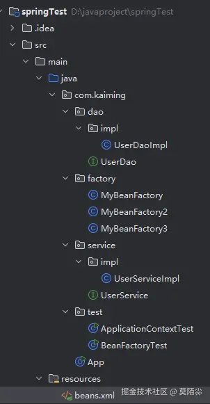 <bean id="userDao1" class="com.kaiming.factory.MyBeanFactory" factory-method="userDao">