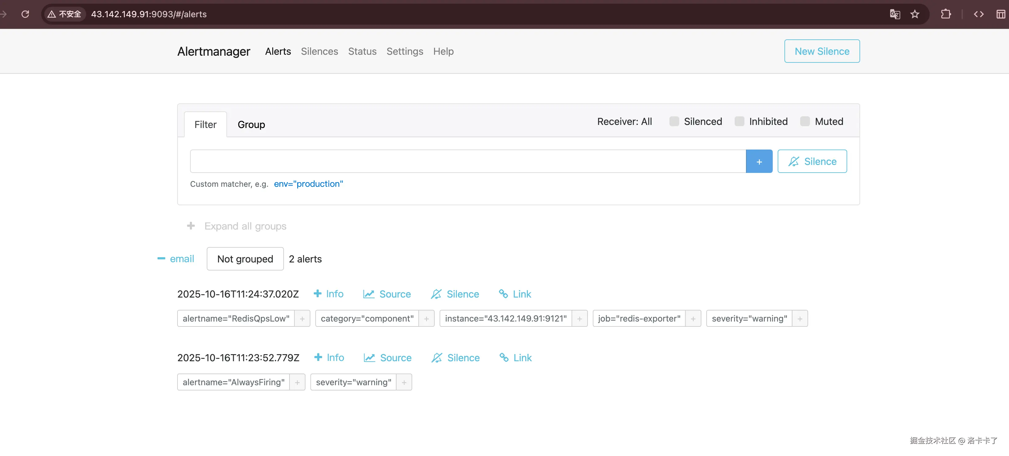 到这里,我们就完整搭建了一套 Prometheus + Alertmanager 的监控告警体系,整体流程也已经跑通了:
