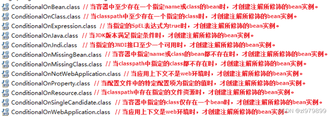 - 该注解及其扩展来的注解的关键是实现Condition接口重写其matches方法