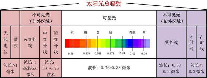 如图所示我们把红光之外、波长760nm到1mm之间辐射叫做红外光,红外光是肉眼看不到的,但通过一些特殊光学设备,我们依然可以感受到。红外线是一种人类肉眼看不见的光,所以,它具有光的一切光线的所有特性。但同时,红外线还有一种还具有非常显著的热效应。所有高于绝对零度即-273℃的物质都可以产生红外线。
