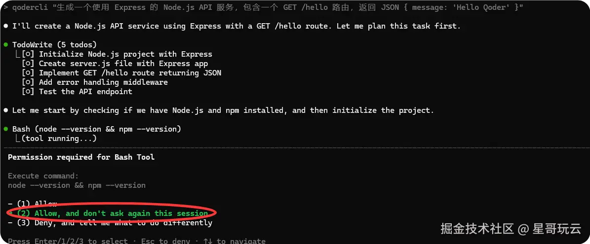 实例:用 Qoder CLI 快速生成一个 Node.js API 服务