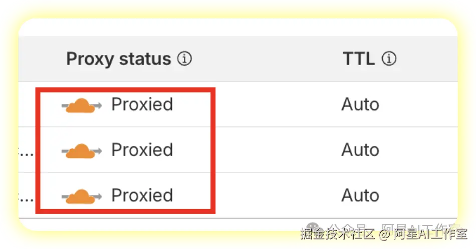 ,不要着急,你只用回到cloudflare里添加记录值的地方把代理都关掉就行了。(将 Proxied