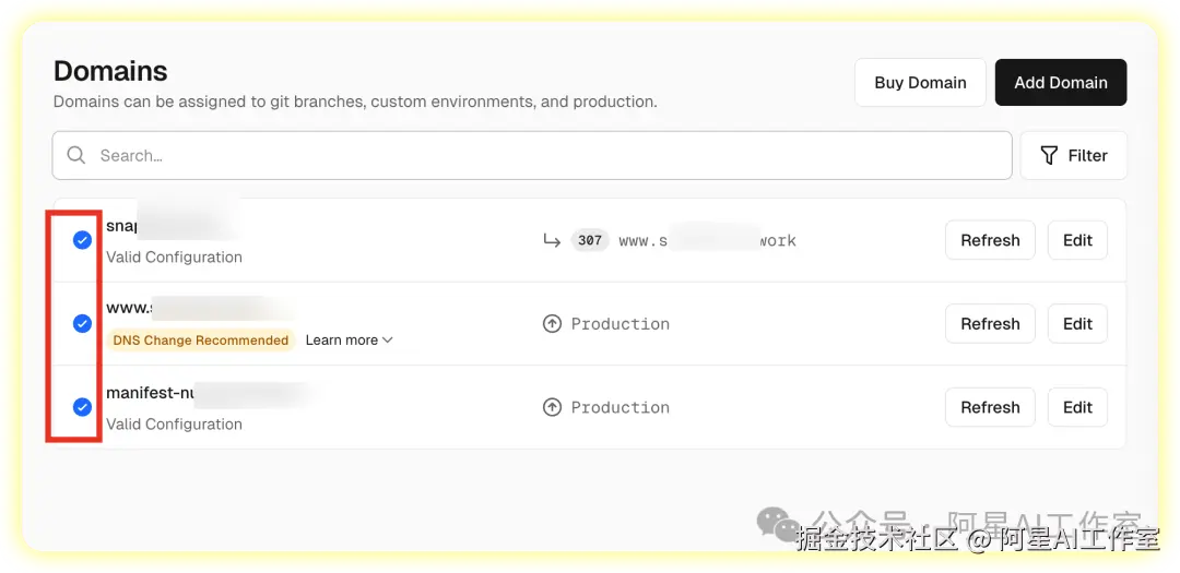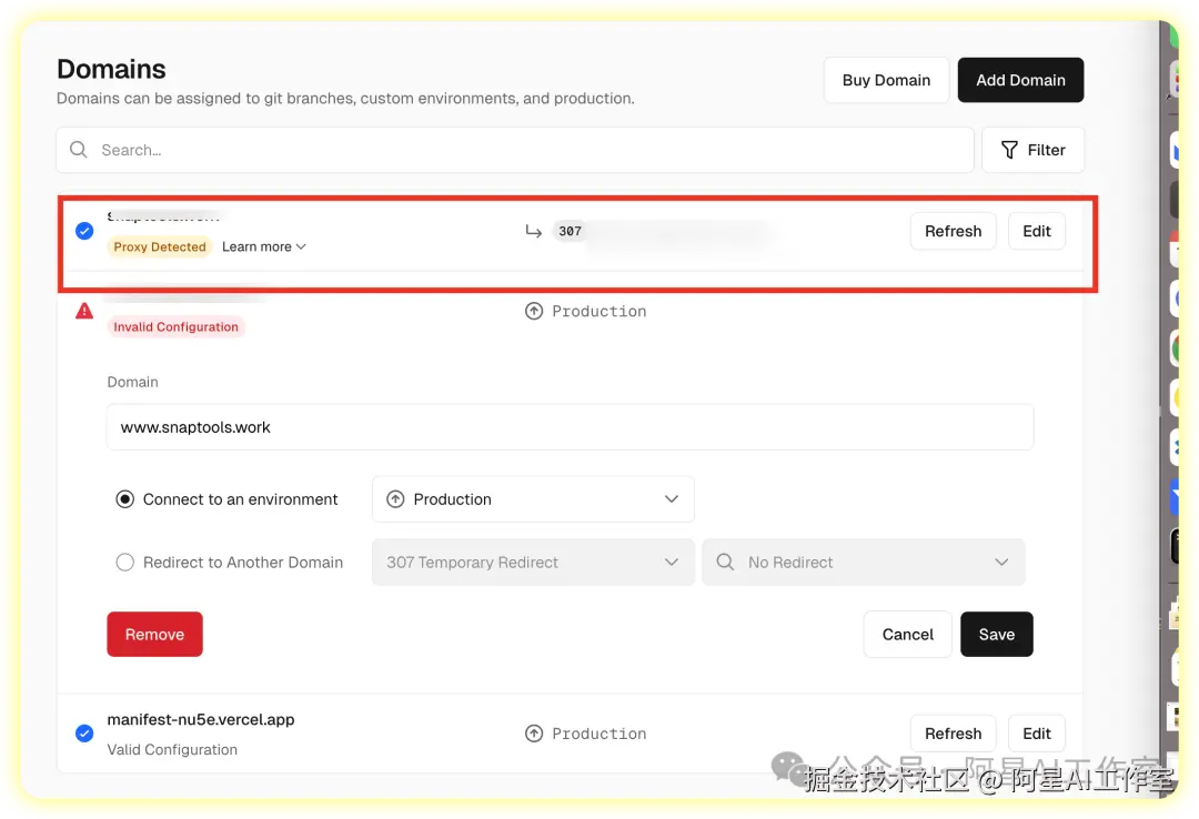 再次回到vercel的domain域名控制台