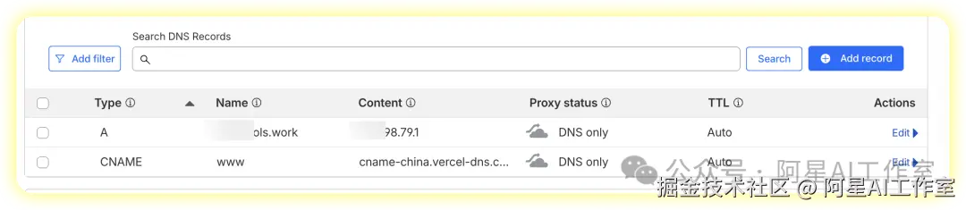 所以我先回到cloudflare添加记录值