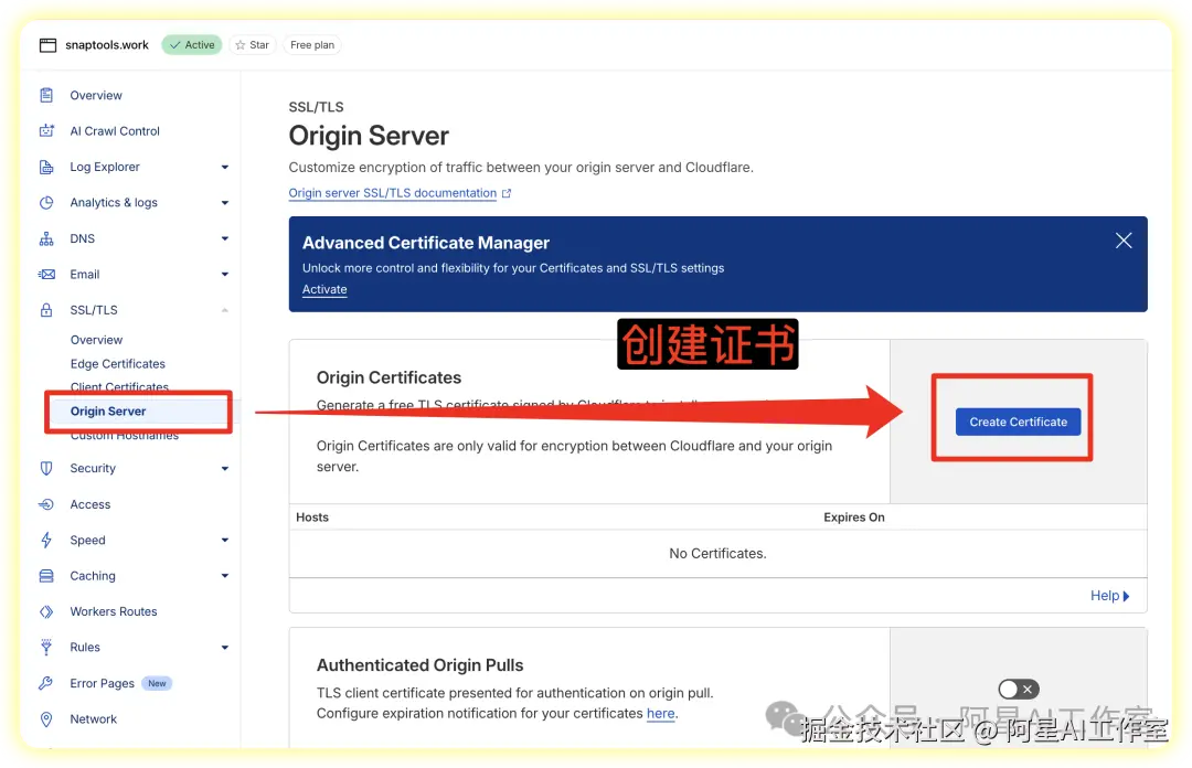 如果你以后想创建证书,就然后继续往下点,创建证书,不用设置什么,保持默认的选项去创建就好。