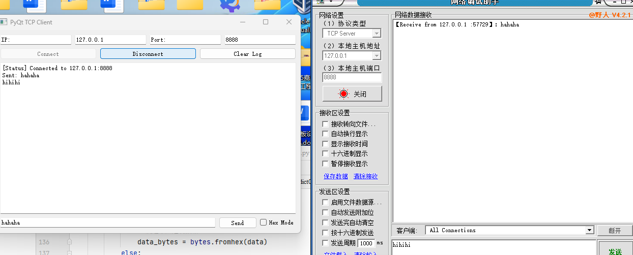 - 打开第二个网络调试助手,选择 TCP Client 模式。