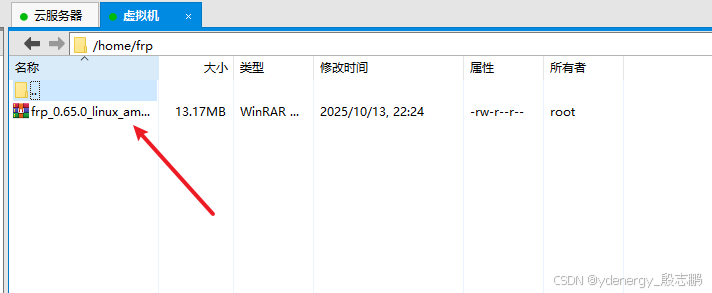这一步主要是为了上传frp压缩包到虚拟机里面