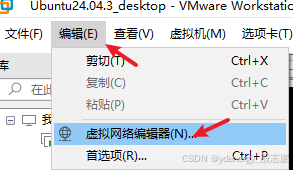 进入虚拟机,点击编辑选项卡,选择虚拟网络编辑器