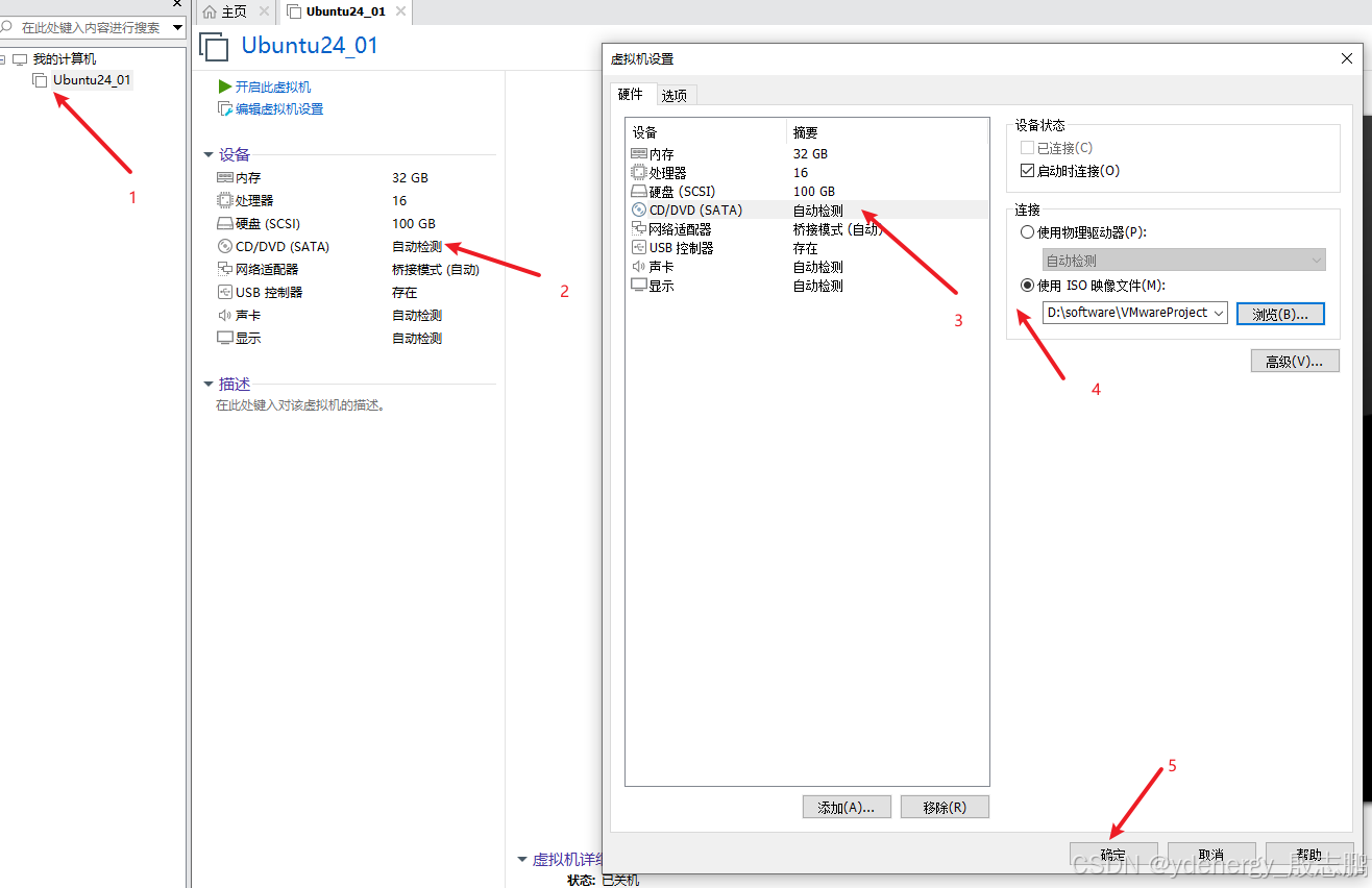 点击刚才创建的虚拟机的CD/DVD,选择我们刚下载的镜像