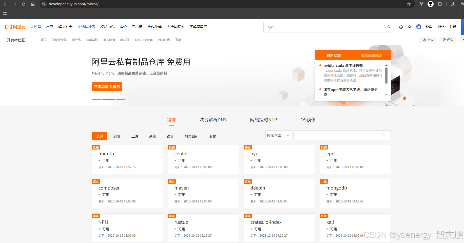 如果上面的网站进不去的话,阿里云提供了各类系统的镜像服务https://developer.aliyun.com/mirror/