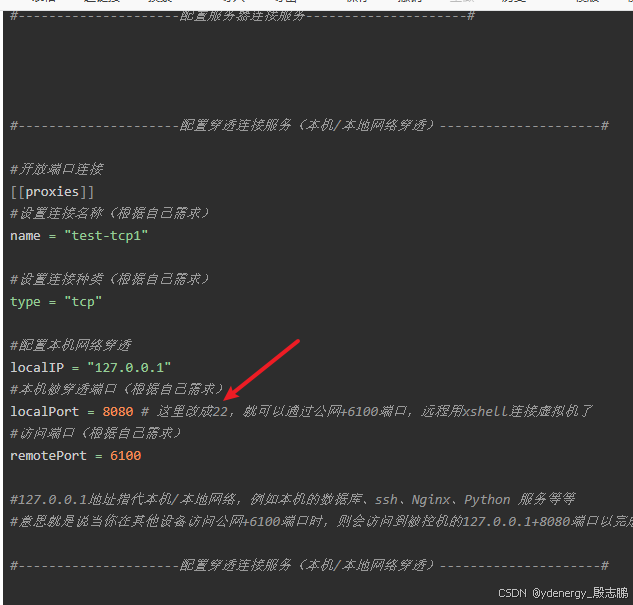 localPort = 8080 # 这里改成22,就可以通过公网+6100端口,远程用xshell连接虚拟机了