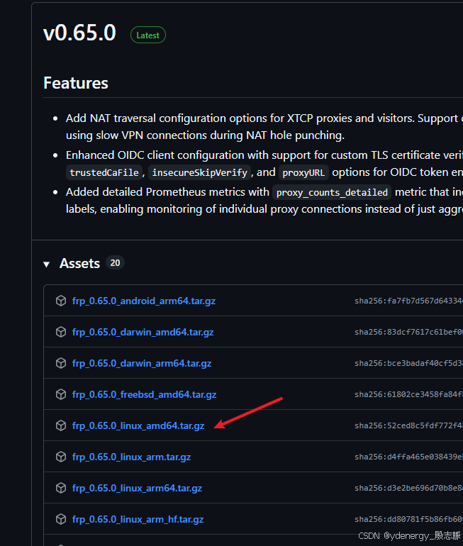 https://github.com/fatedier/frp/releases,我这里是Linux系统,所以我下载Linux系统的版本。