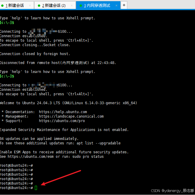 此时就会通过公网穿透到虚拟机的22号端口上了