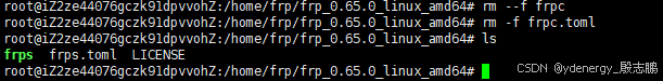 这里有几个文件,c结尾的frpc和frpc.toml是客户端Client,代表被控设备,我们这里是云服务是Server服务端,所以删除这两个文件
