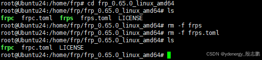 3、进入文件夹,删除frps和frps.toml,因为我们这里是Client客户端