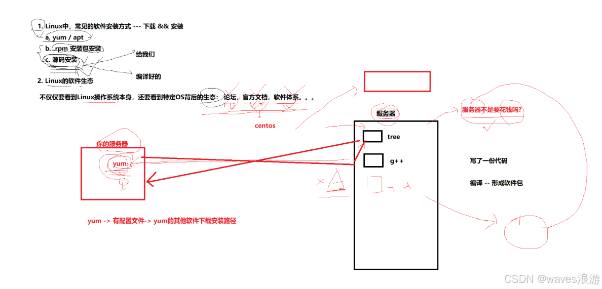 Centos中yum源(就是图中所说的yum的配置文件,配置文件中记录了它应该到哪里去找软件并把它下载安装到我们自己的服务器上)的路径: