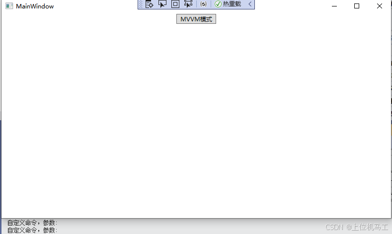 当点击按钮"MVVM模式"时,会触发cmd_test命令绑定的Test方法执行,这样会在控制台打印"自定义命令,参数:"
