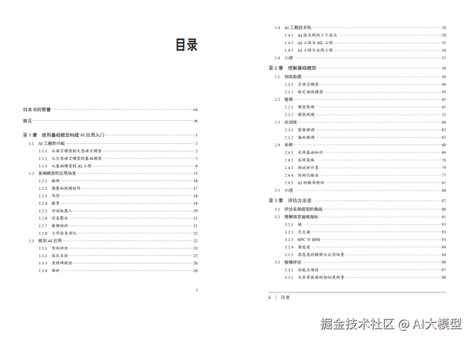 - 适用人群:本书适合那些希望利用基础模型解决实际问题的人,无论是从零开始构建或优化 AI 应用,还是希望提高团队的 AI 开发效率,亦或是想了解如何利用基础模型提升业务底线并建立相应团队的人。此外,工具开发者、研究人员、求职者以及希望更好地理解 AI 能力和局限性的人也能从中受益。