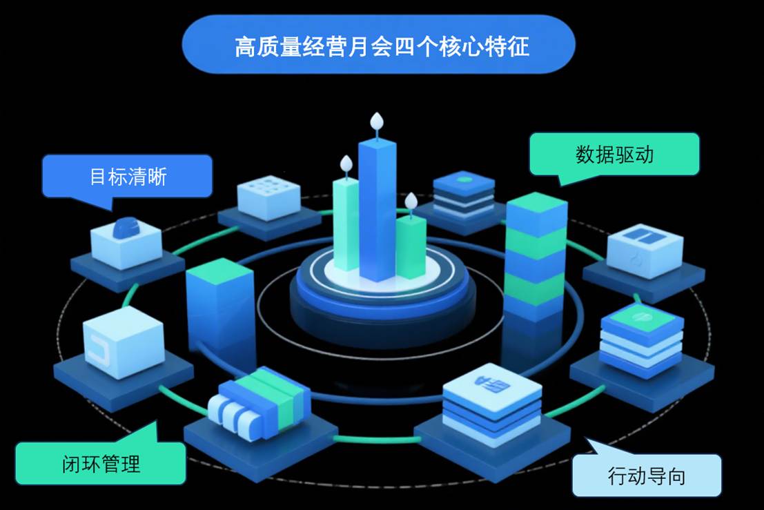 首先,会议必须目标清晰 。经营月会不是为了开会而开会,而是要解决经营中的实际问题。其次,会议决策必须由数据驱动 。决策需要依据,而非凭感觉。第三,会议必须行动导向 。每个议题都应当产出明确的行动计划。最后,会议必须闭环管理。上次会议的决议与待办要有跟进,形成管理闭环。