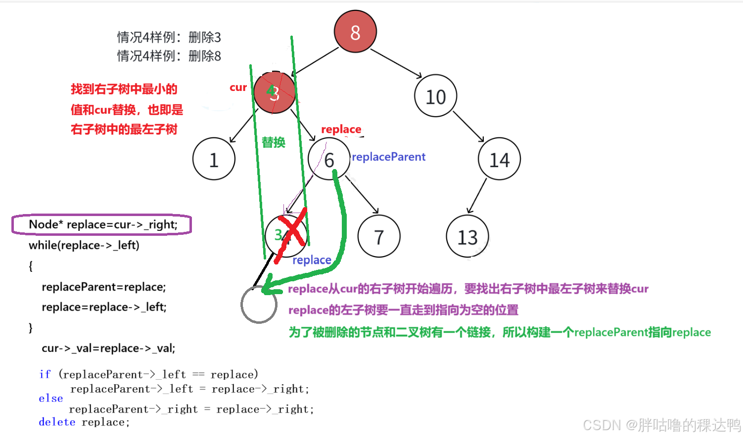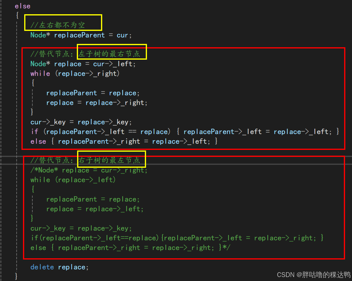 if(replaceParent->_left==replace){replaceParent->_left = replace->_right; }