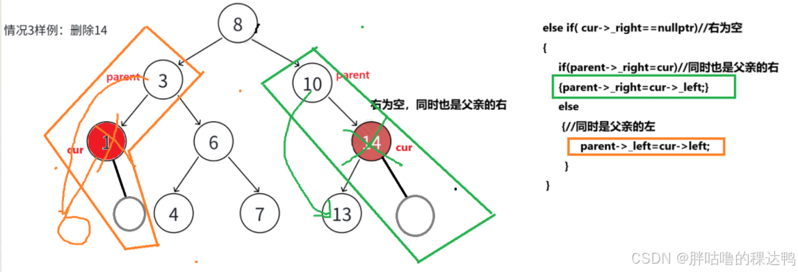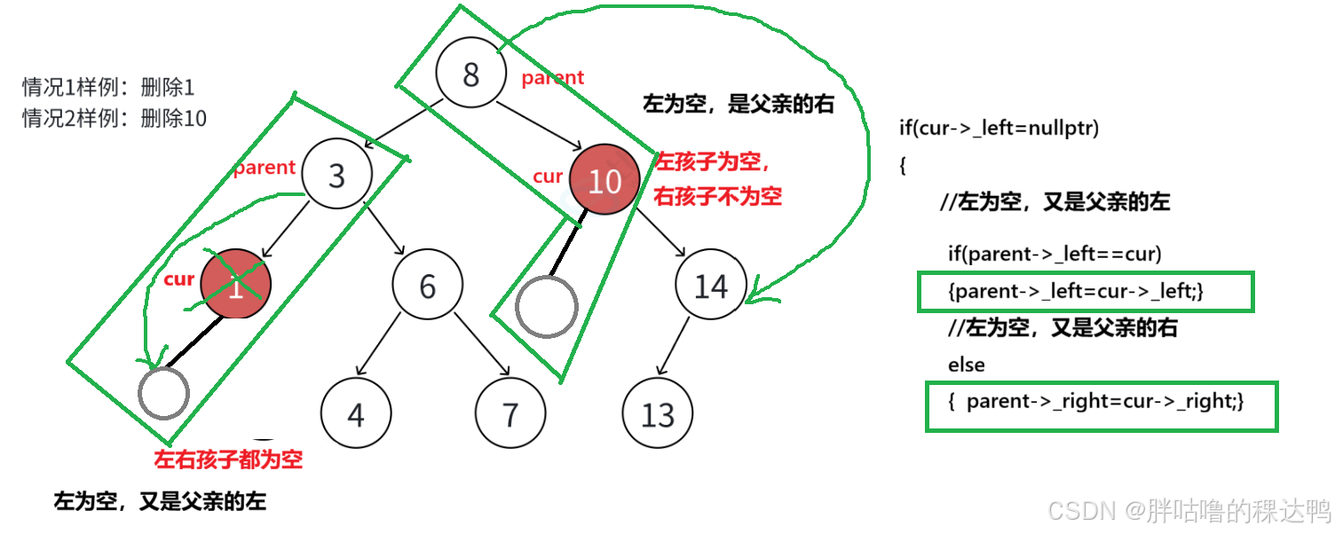 if (parent->_left == cur) { parent->_left = cur->_left; }