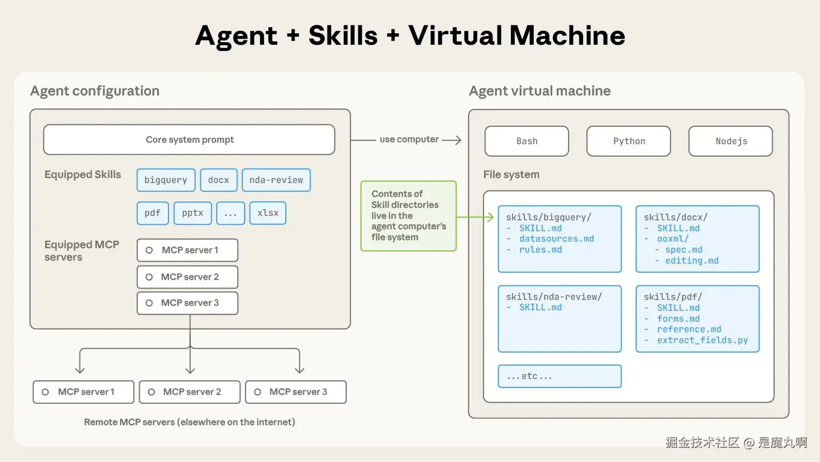 随着模型能力的提升,我们现在可以构建与完整计算环境交互的通用 agents。例如,Claude Code 可以使用本地代码执行和文件系统在各个领域完成复杂任务。但随着这些 agents 变得更强大,我们需要更具组合性、可扩展性和便携性的方法来为它们配备特定领域的专业知识。