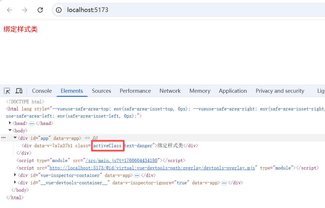 <div :class="[{ activeClass: isActive }, errorClass]">绑定样式类</div>