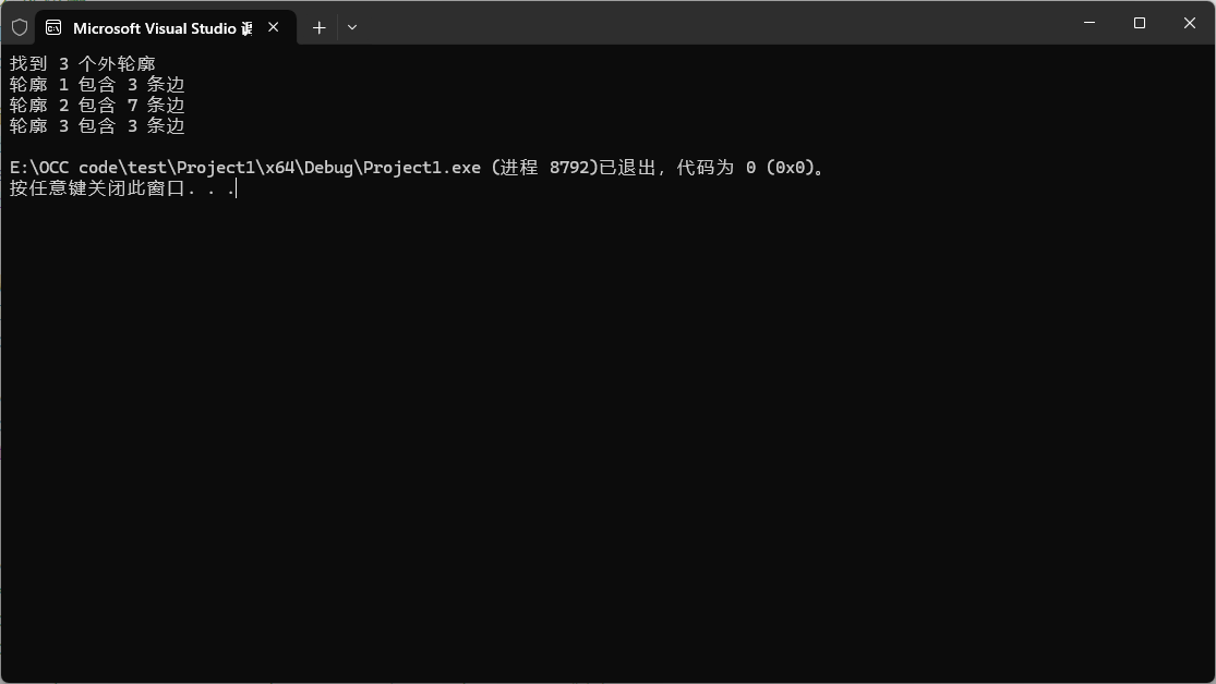 std::cout << "找到 " << outerWires.Extent() << " 个外轮廓" << std::endl;