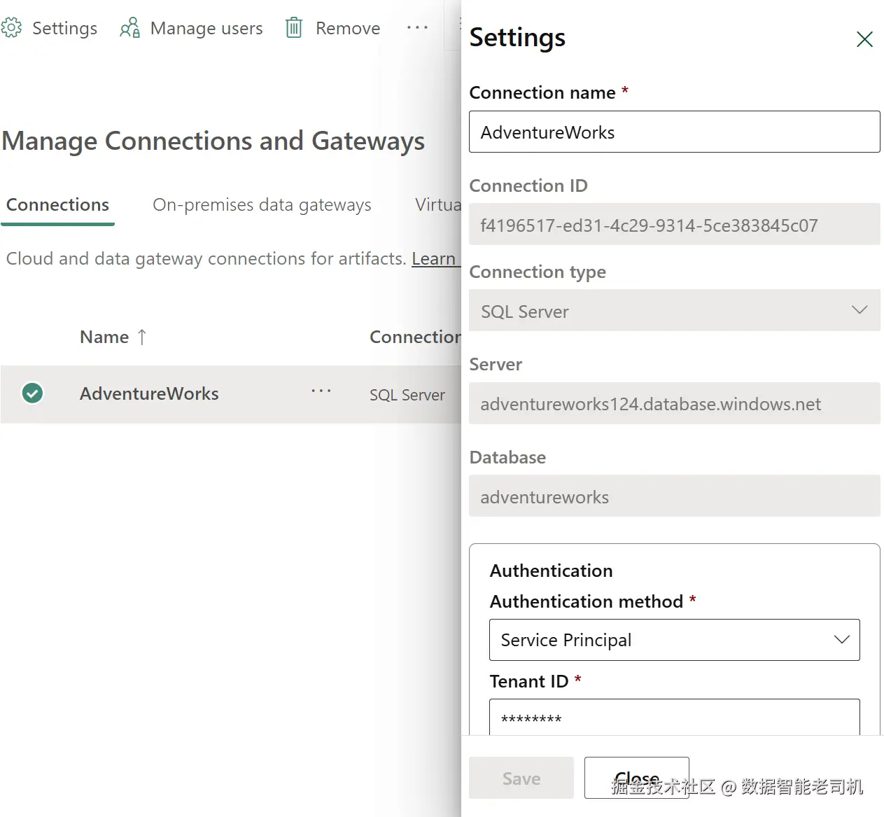 要从 AdventureWorks 示例数据库读取数据并写入 Bronze 层,需要在 Data Factory 中设置必要的连接信息。这些配置定义了连接到目标源或目标端所需的属性与凭据。