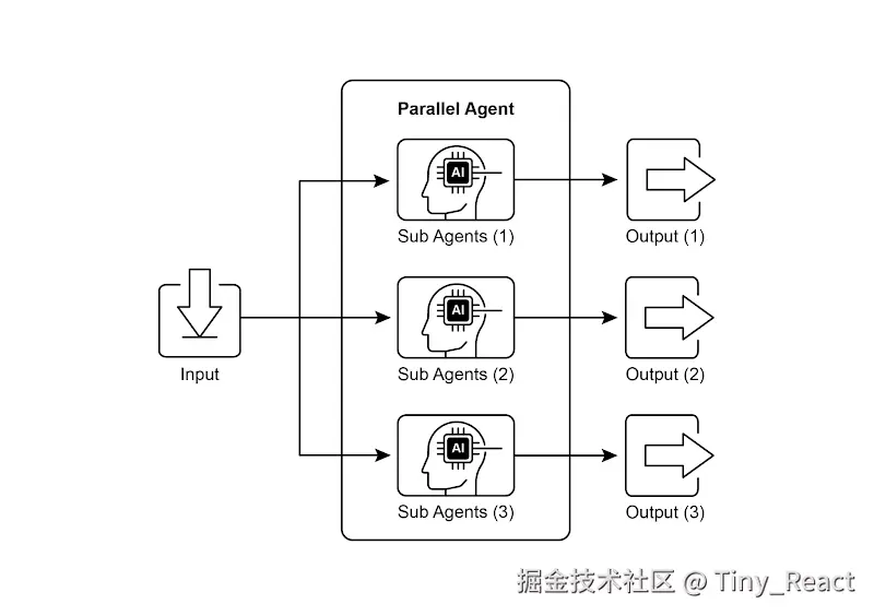 并行化涉及并发执行多个组件,例如 LLM 调用、工具使用,甚至整个子智能体(见图 1)。与其等待一个步骤完成再开始下一个步骤,并行执行允许相互独立的任务同时运行,从而显著减少可以拆分为独立部分的任务的总体执行时间。