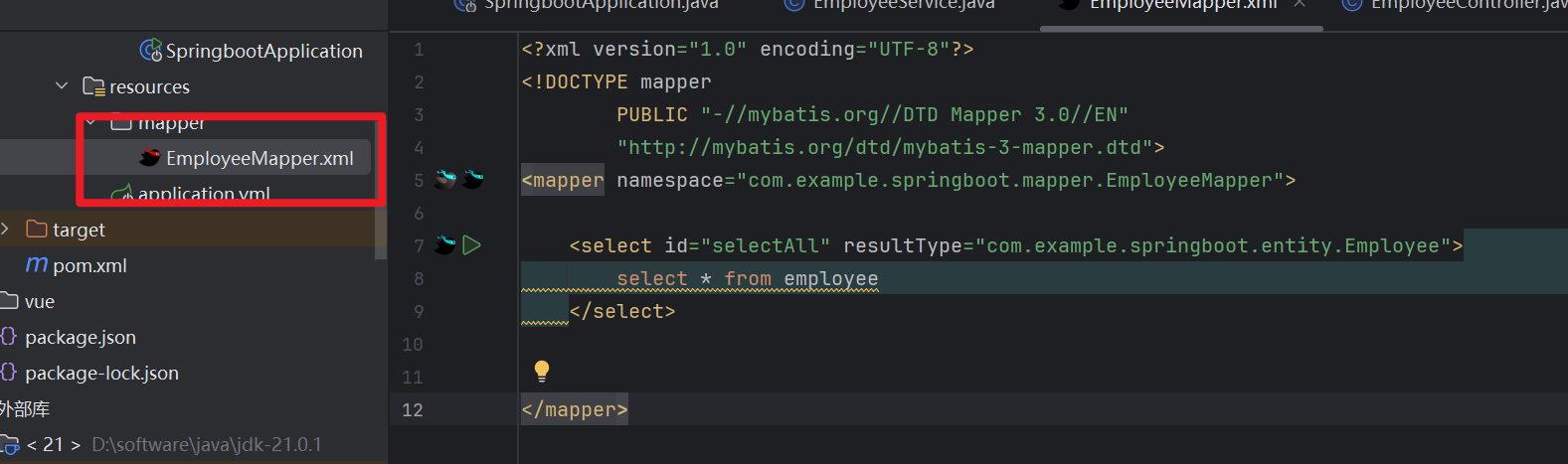 写好代码后,进行测试访问 http://localhost:9090/employee/selectAll