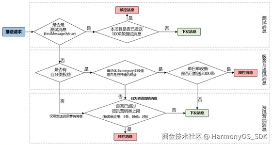 为了助力应用优化推送策略,提升终端用户的体验,构建健康可持续的通知生态,HarmonyOS SDK 推送服务(Push Kit)特别制定了多条消息频控规则,并呼吁广大应用厂商在既定消息频控规则内制定消息营销策略,若应用推送的消息超出设定的规则限制,那么超出部分的消息将被自动丢弃,直至次日才会自动恢复推送功能。