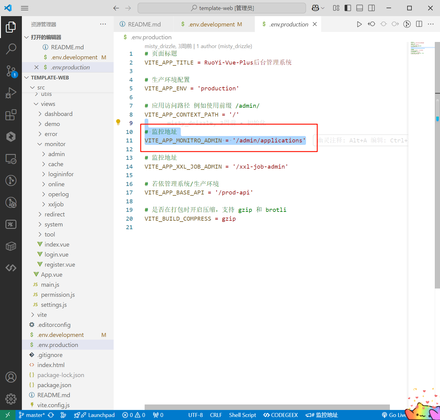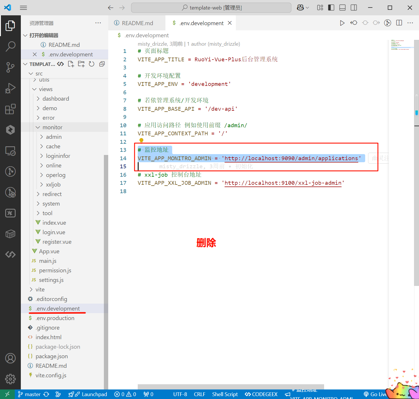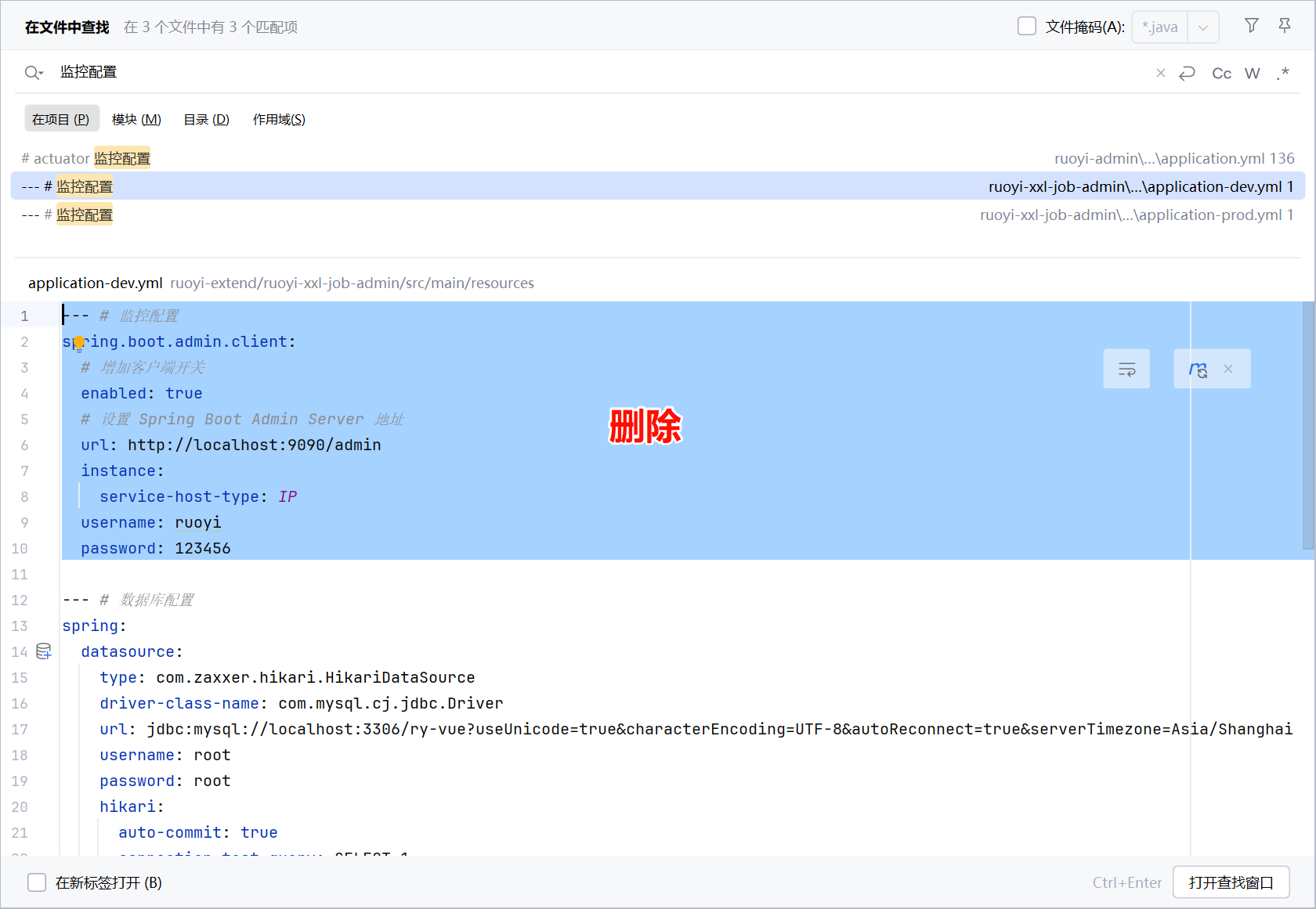 development、production删除监控地址