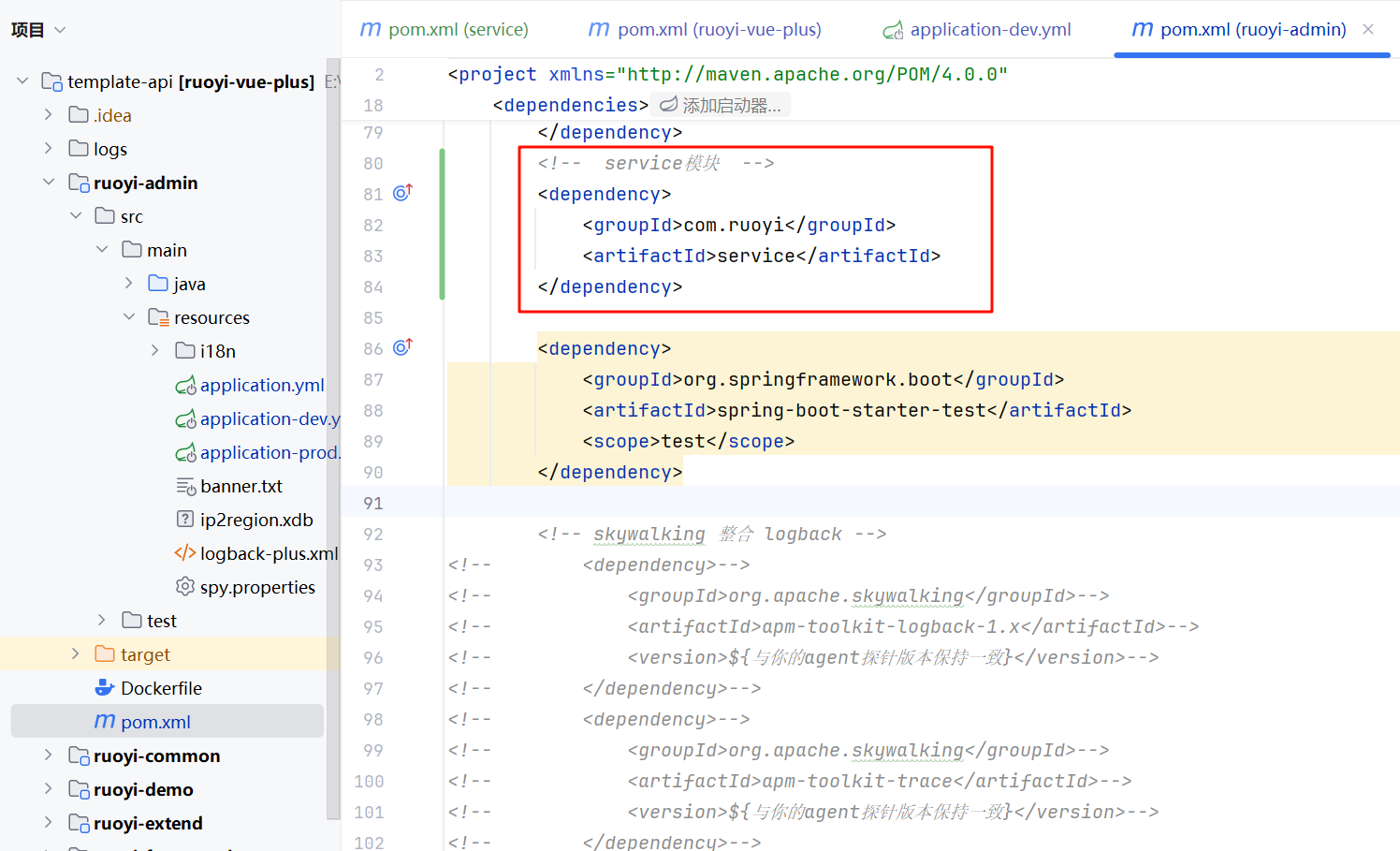在ruoyi-admin/pom.xml