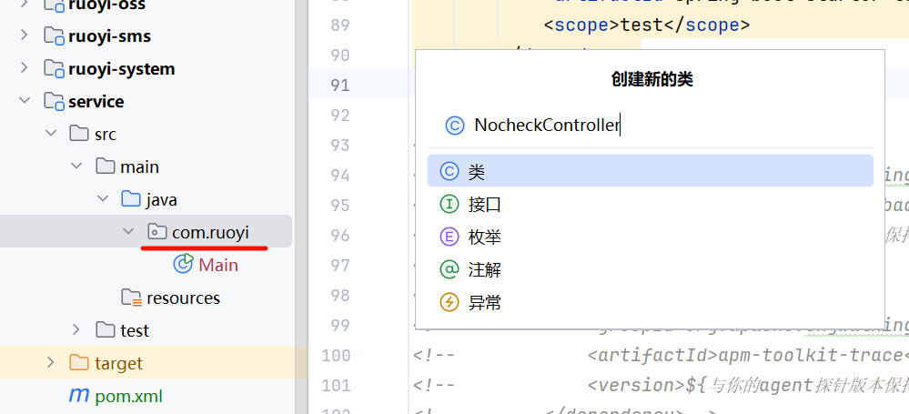 在com.ruoyi包下创建新的类