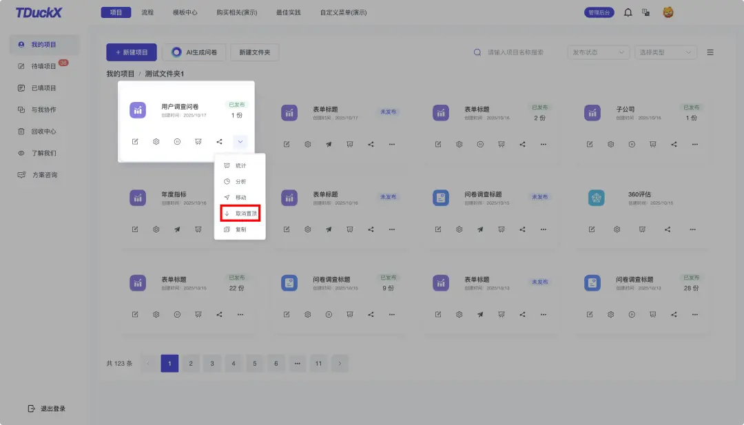 在表单列表中,新增了取消置顶的功能,原来置顶的表单,现在可以随时取消置顶,管理更灵活,界面也更整洁。