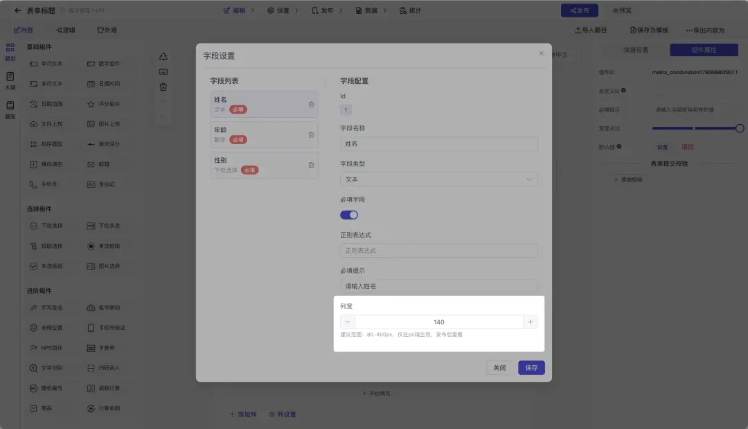 这个版本中我们增强了矩阵组合、自增表单组件,现在我们可以直接在设计器里手动调整列宽,让表格展示更美观,更符合业务布局。