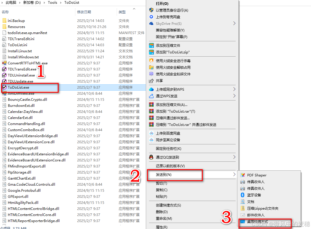 右键单击 ToDoList.exe,选择 "发送到" → "桌面快捷方式"