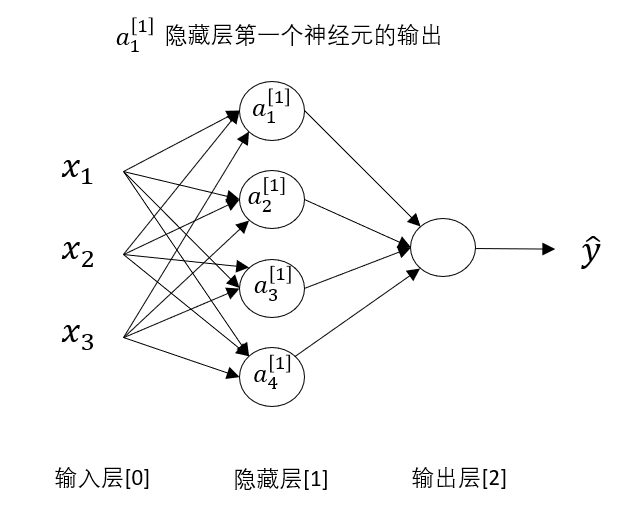 要说明的是并非隐藏层就是第1层,输出就是第2层,只是这个浅层神经网络中只有一层隐藏层,所以输出是第2层。
