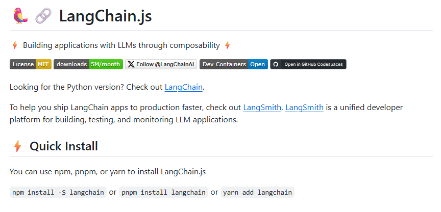 💡 推荐语: LangChainJS 助你快速构建基于大型语言模型的智能应用,轻松实现上下文感知推理和强大的AI功能。