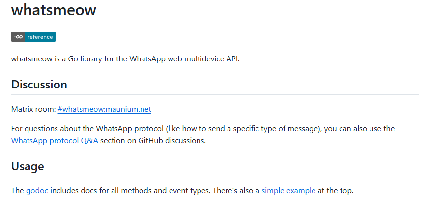 📋 项目介绍: Go library for the WhatsApp web multidevice API
