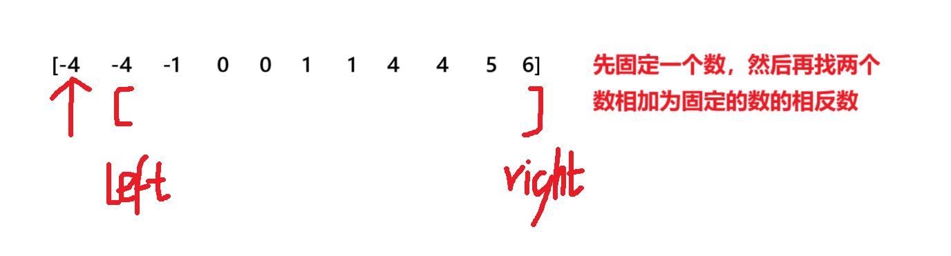 1.排序 2.固定一个数a(并且这个数要小于0,否则在已经有序的情况下不可能找到符合要求的两个数)